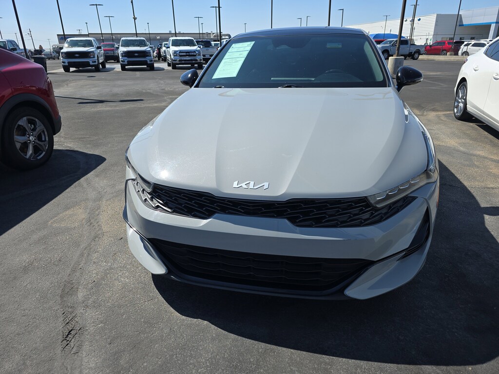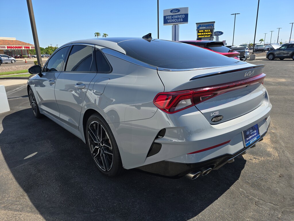 Trustworthy and worry-free, this Used 2023 Kia K5 GT packs in your passengers and their bags with room to spare. This Kia K5 has the following options: WOLF GRAY, WHEEL LOCKS, CARPETED FLOOR MATS, CARGO NET, Window Grid Antenna, Variable intermittent wipers, Urethane Gear Shifter Material, Turn-By-Turn Navigation Directions, Trunk Rear Cargo Access, and Trip computer. Pilot the whole group in the comfort of every amenity in this trustworthy and dependable Kia K5. Stop by Bill Alexander Ford Lincoln located at 801 E 32Nd St, Yuma, AZ 85365 for a quick visit and a hassle-free deal!